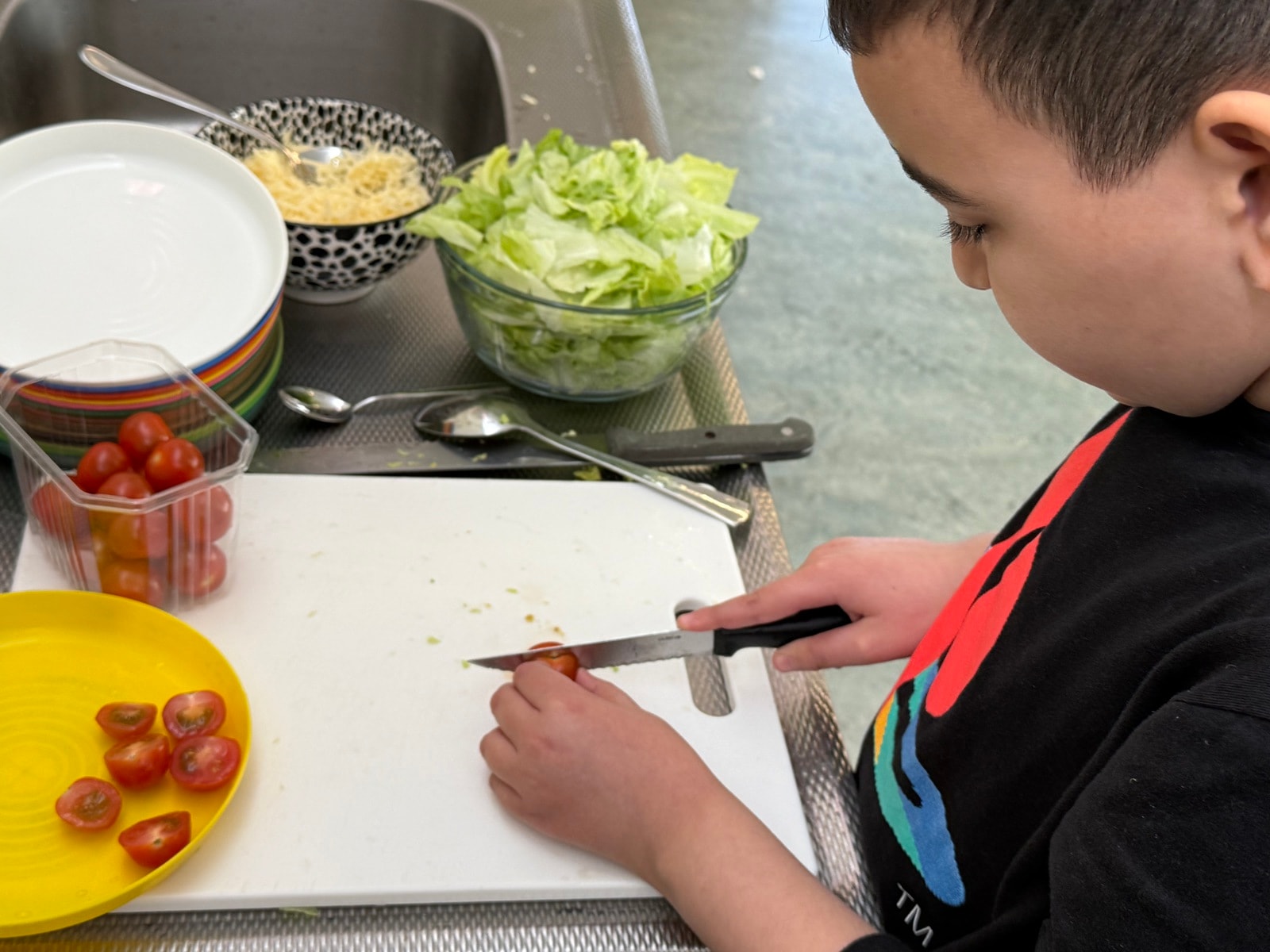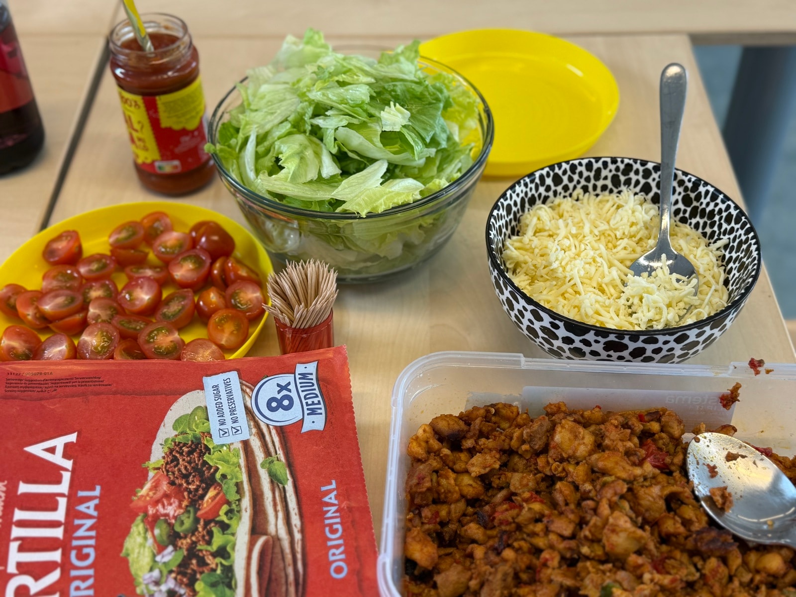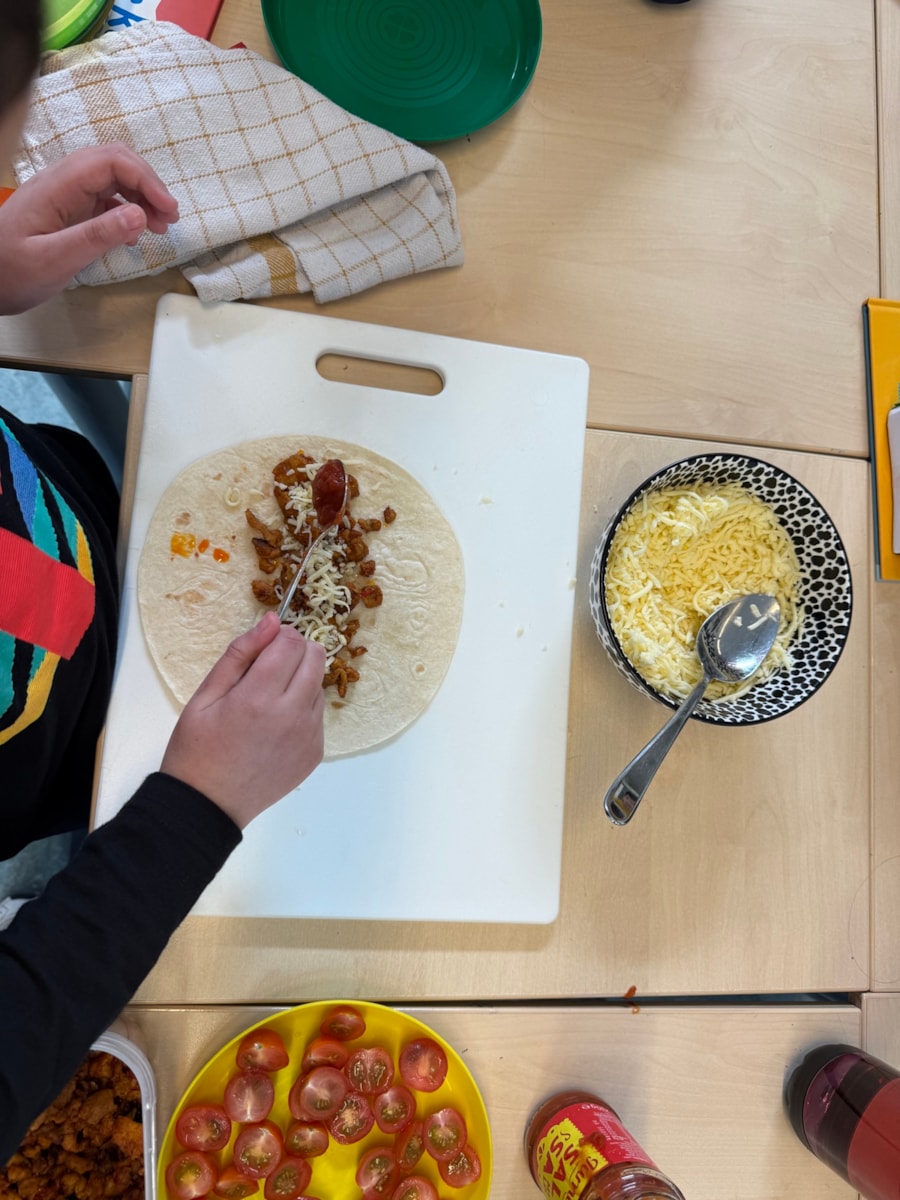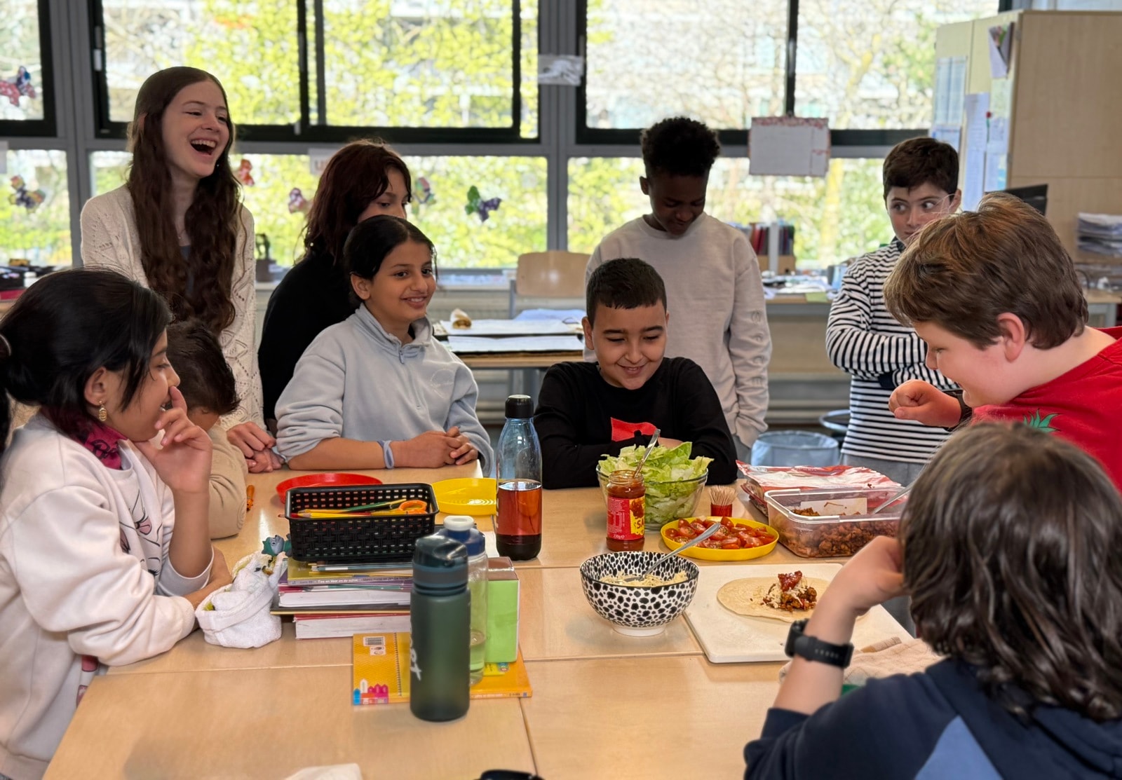 Afgelopen week hebben wij het thema In vogelvlucht afgerond en zijn we gestart met een nieuw thema: Eten. Dit nieuwe thema verdiende natuurlijk een smakelijke en pakkende opening. Daarom hebben we samen met de hele klas wraps gemaakt. Alle kinderen hebben enthousiast meegeholpen en het resultaat was verrukkelijk!