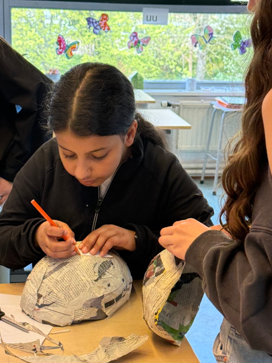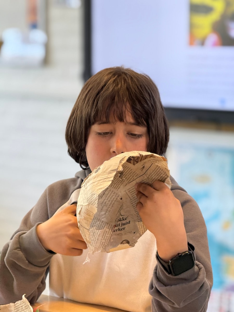 Daarnaast hebben we verder gewerkt aan onze maskers. Wanneer het weer het toeliet, hebben we ook lekker buiten gespeeld en genoten van de zon.