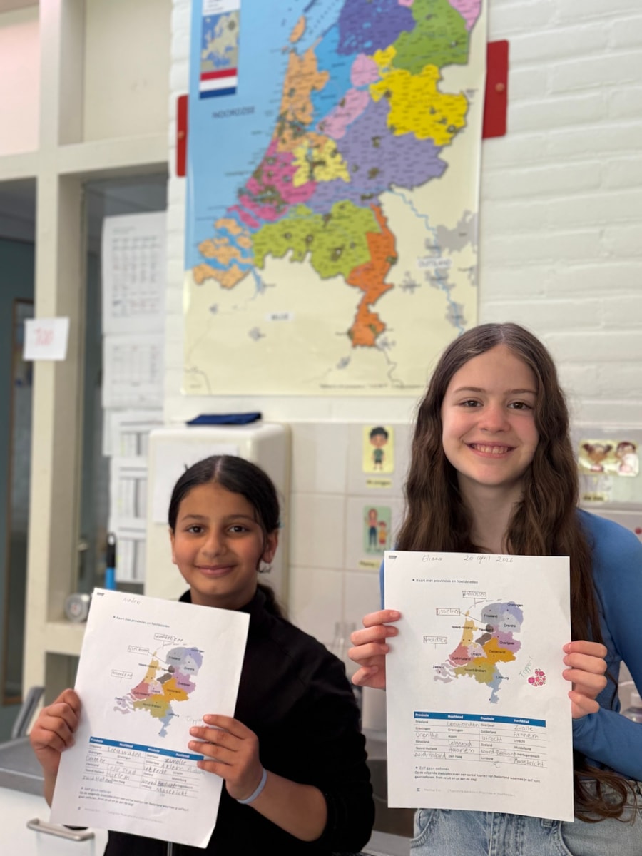 Naden en Eleanor hebben de toets topografie van Nederland (alle provincies, hoofdsteden en wateren) gehaald en gaan nu vol enthousiasme verder met de topografie van Europa!π