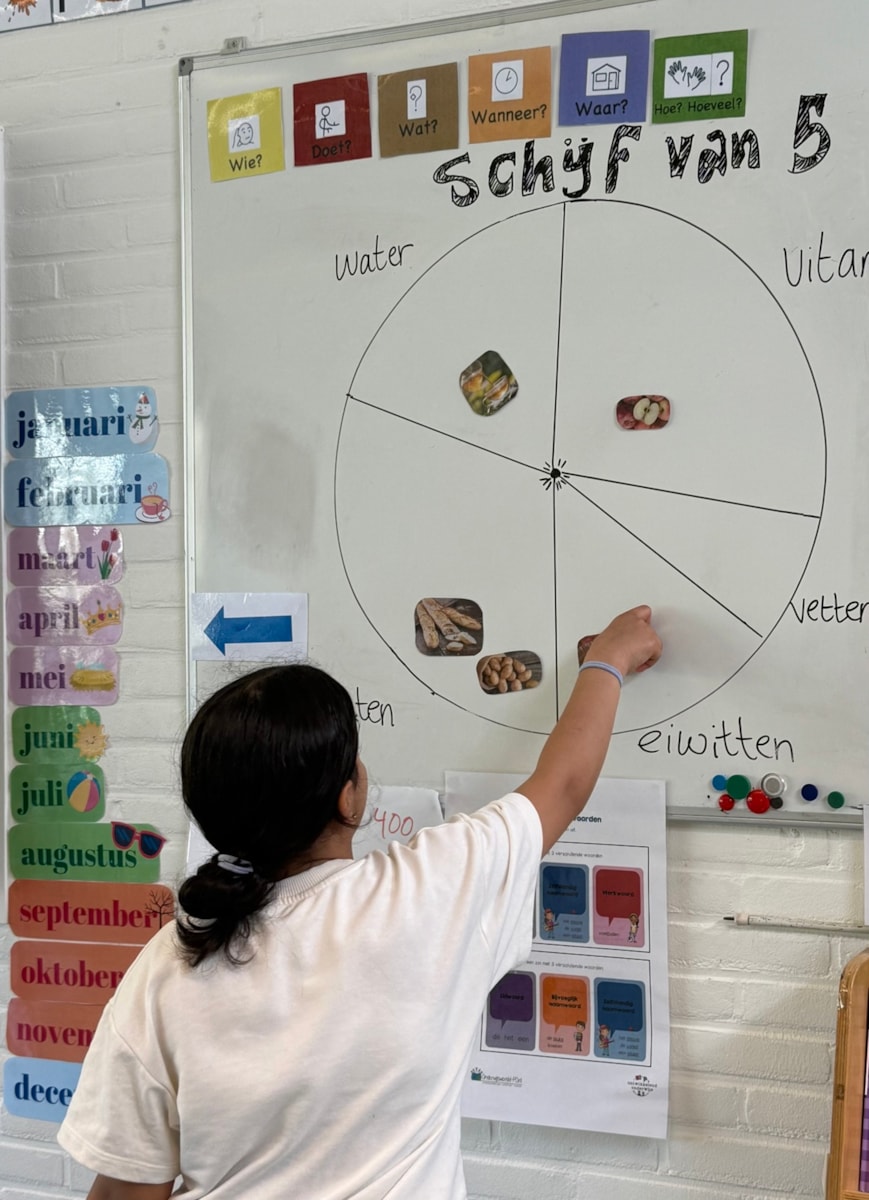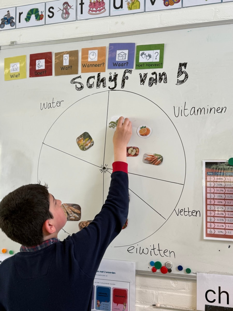 Afgelopen week hebben wij de Schijf van Vijf behandeld. We hebben geleerd welke voedingsmiddelen we nodig hebben en in elkaars broodtrommels gekeken om met elkaar te praten over onze eetpatronen en hoe deze eventueel verbeterd kunnen worden.