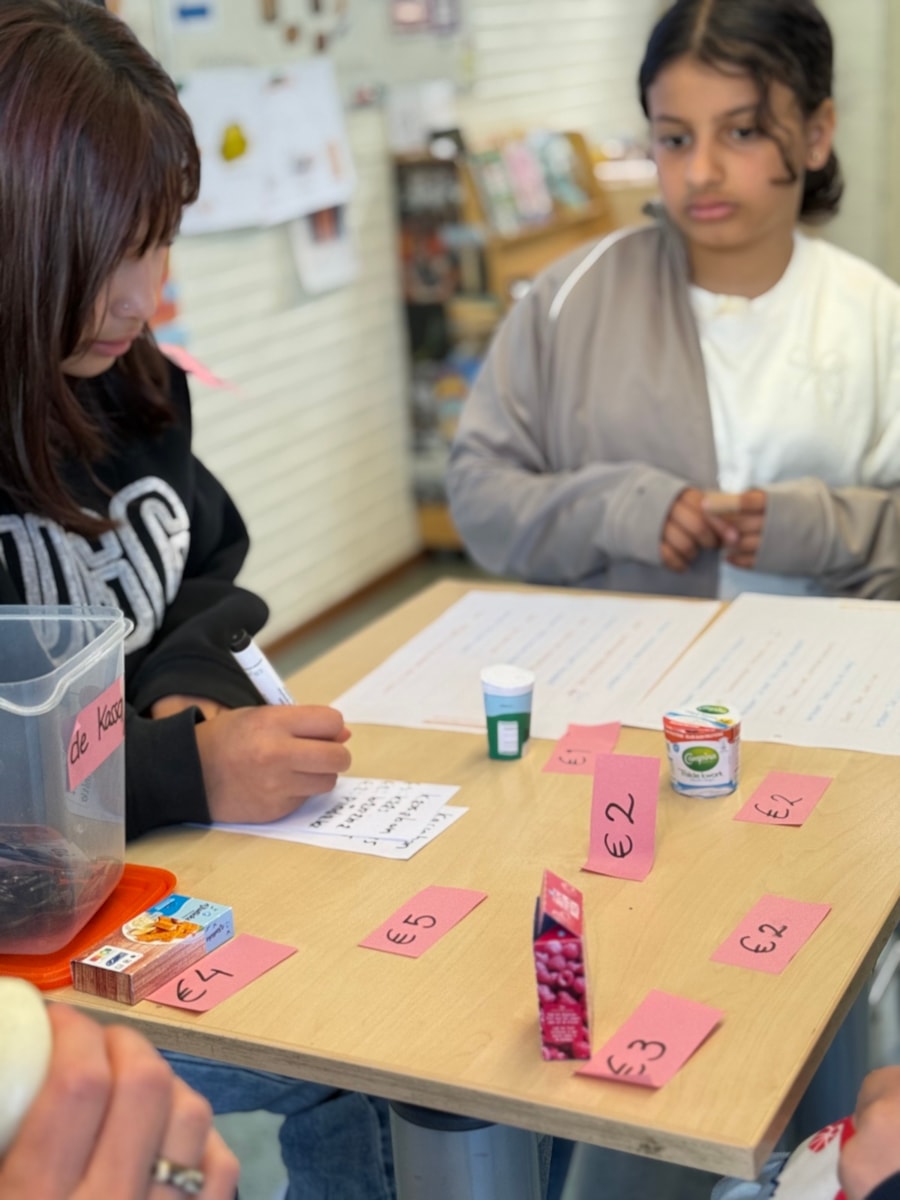Daarnaast hebben we een winkeltje opgericht en zinnen geoefend die we dagelijks gebruiken of horen bij het doen van boodschappen.