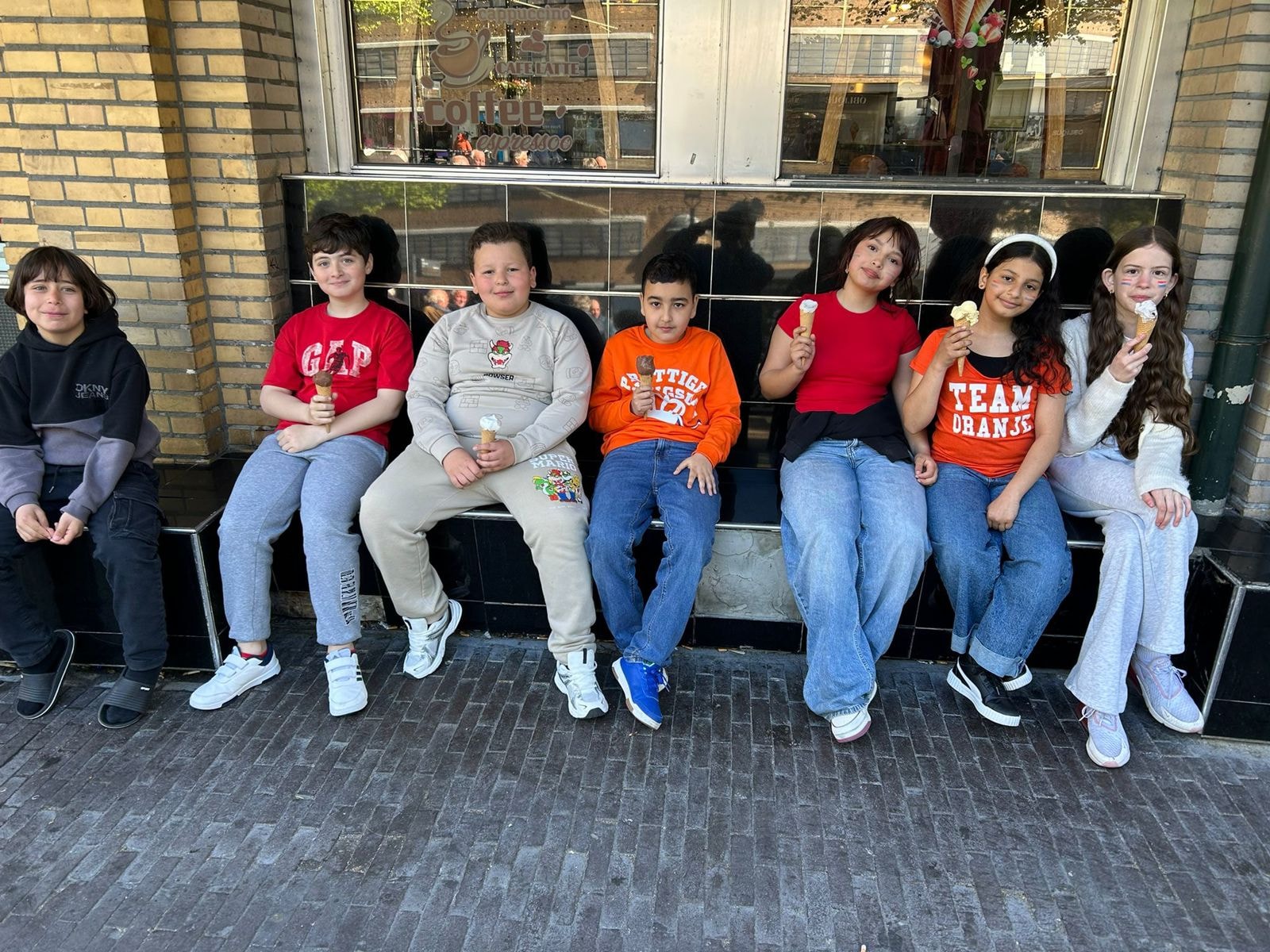 Juf Dini heeft alle kinderen op een ijsje getrakteerd.