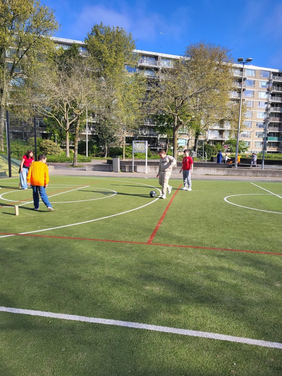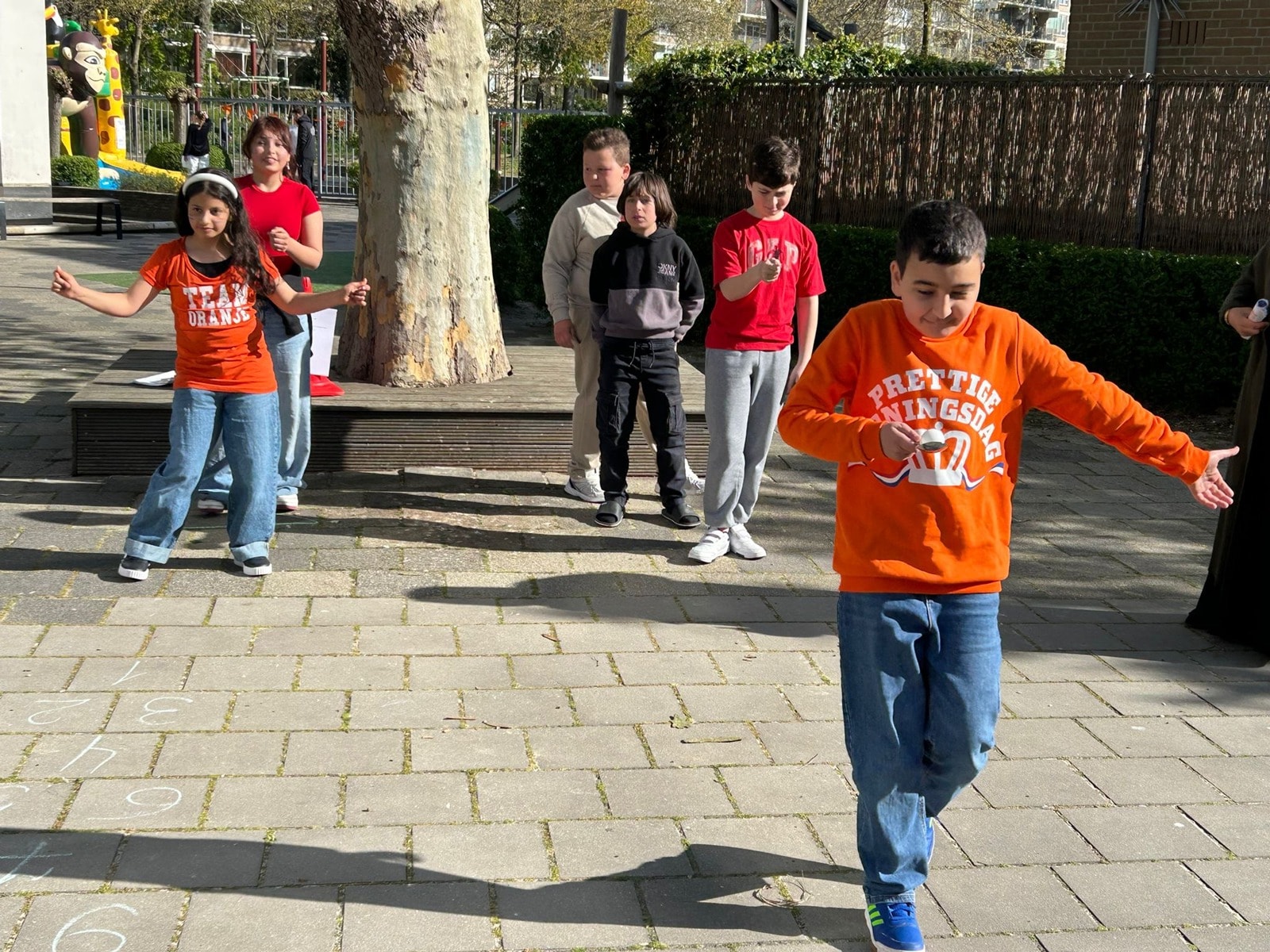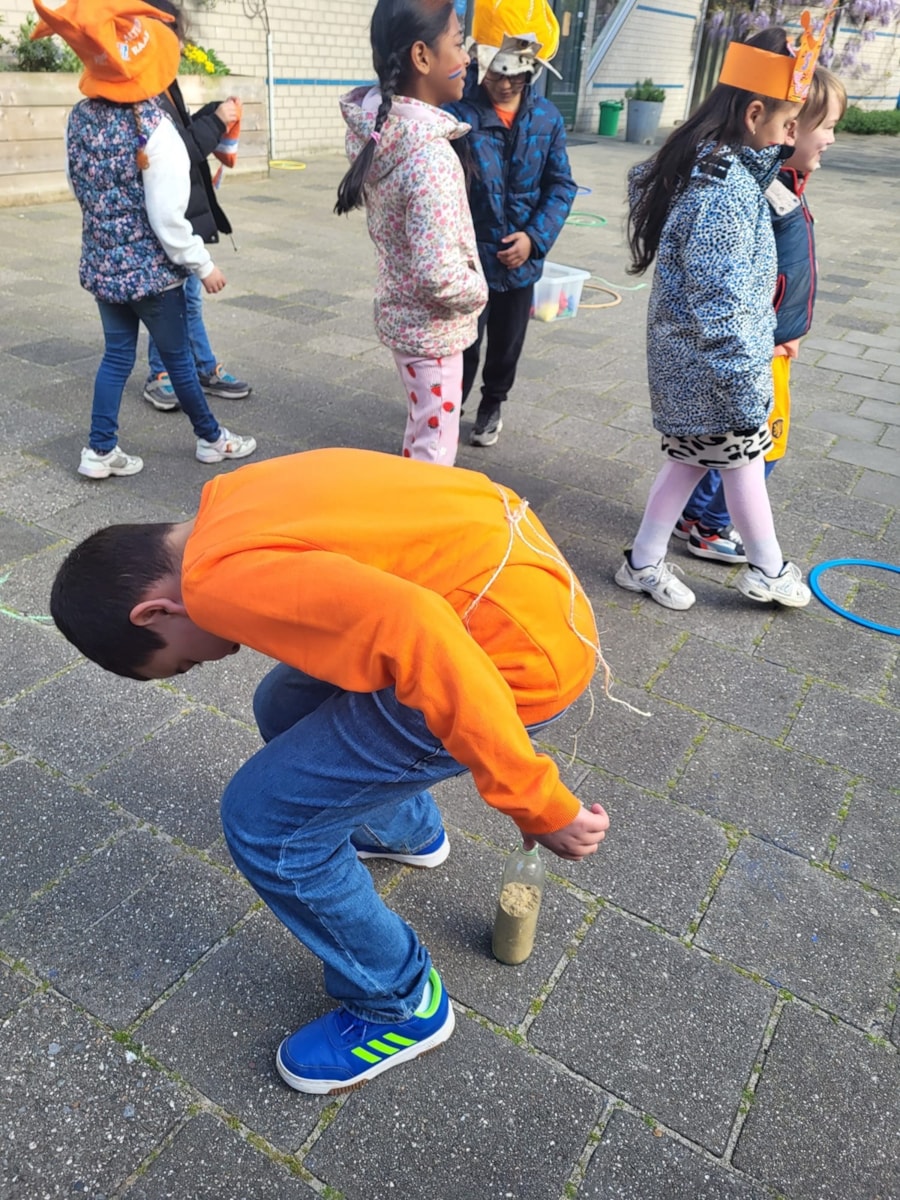 Vandaag was de sportdag. De kinderen hebben kennisgemaakt met oude en nieuwe Nederlandse spelletjes en hebben veel plezier gehad tijdens het samenspelen.